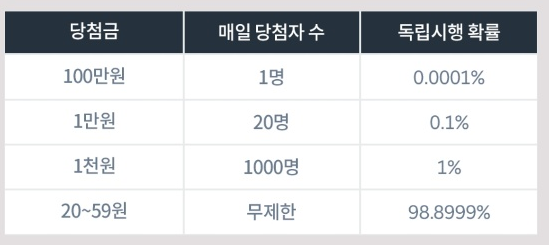 상자 개봉시 현금으로 20~59원을 얻을 수 있습니다.