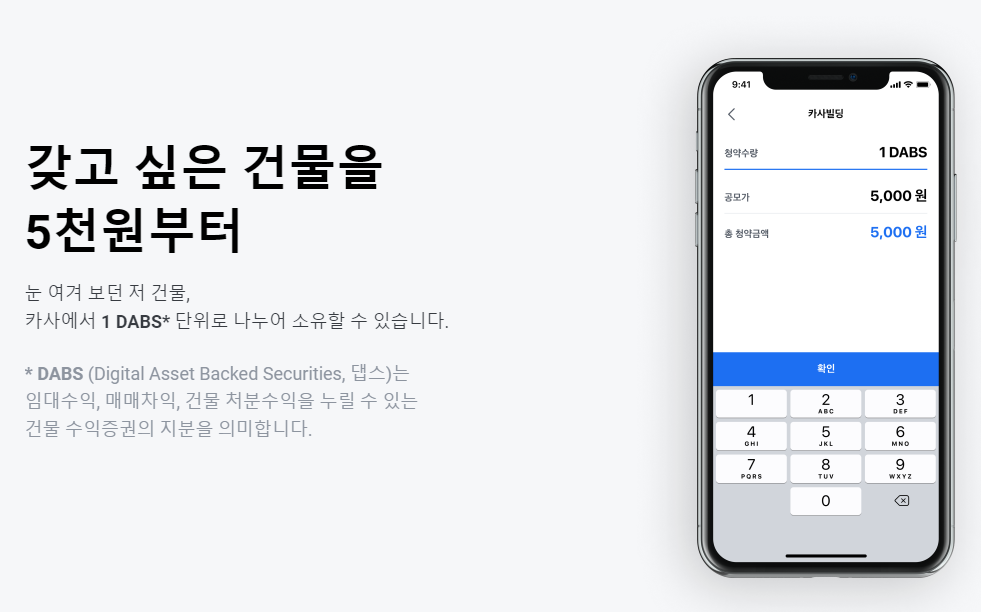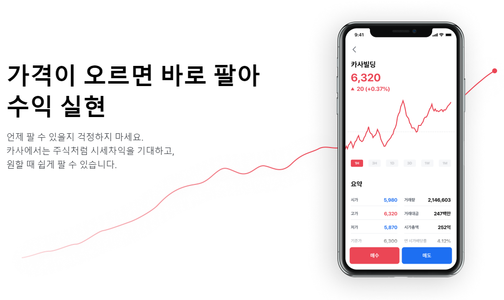 카사는 오천원 단위로 거래가 가능하다고 합니다. 소액으로 접근이 가능한 것이죠.