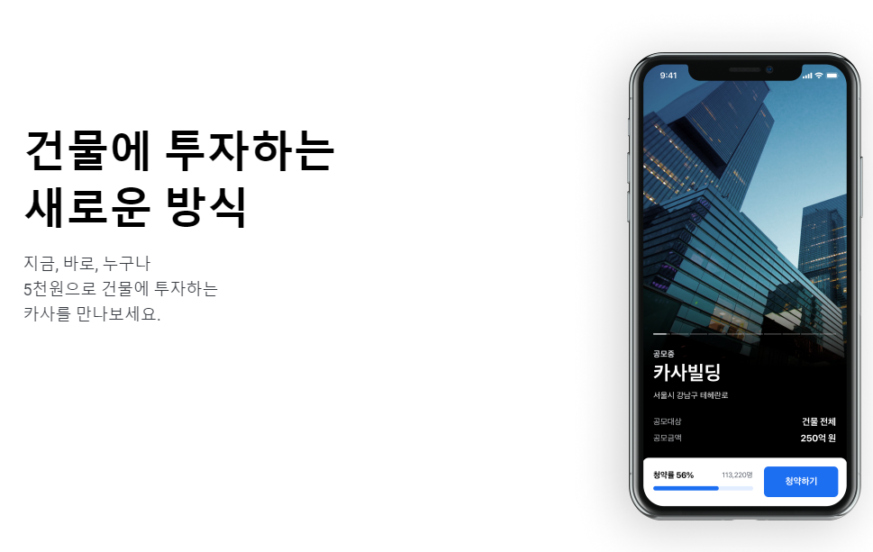 기존의 부동산 투자와 다른 점은 P2P 투자처럼 건물을 담보로 분양 후 수익 분배를 하는 부동산 담보채권 정도가 개인이 투자할 수 있는 부동산 투자였는데 실제 건물에 투자하는 상품을 카사가 내놓은 겁니다.